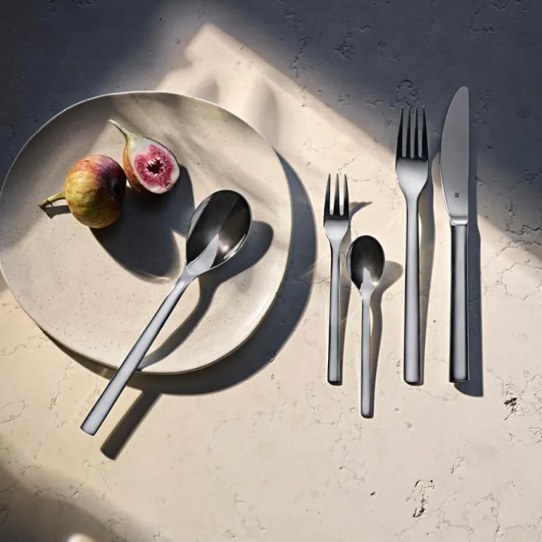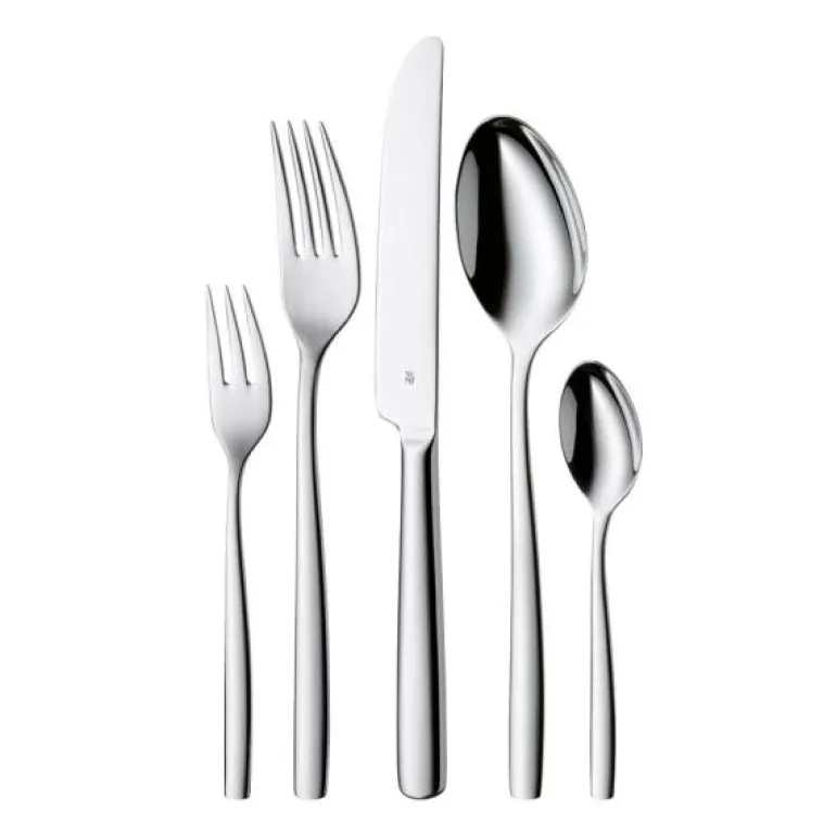 Dekk bordet med dette flotte 30 delers Palma-bestikksettet fra WMF, som imponerer med sine nøytrale linjer og vakre former, og som rett og slett passer perfekt til enhver borddekking. Et enkelt og elegant bestikk fremstilt i Cromargan® rustfritt stål 18/10 i høy kvalitet som holder år etter år. Og det utrolig flotte designet slår aldri feil. Bestikkets ergonomiske design er basert på mange års erfaring og ekspertise, noe som WMF er berømt for, og ligger derfor perfekt i hånden. Knivene er smidd av ett enkelt stykke spesialbladstål og herdet som en helhet. Den spesialdesignede taggete eggen er med på å sikre en optimal og langtidsholdbar skarphet. Tåler oppvaskmaskin for rask og enkel rengjøring. Settet leveres i en flott eske for en sikker og praktisk oppbevaring.