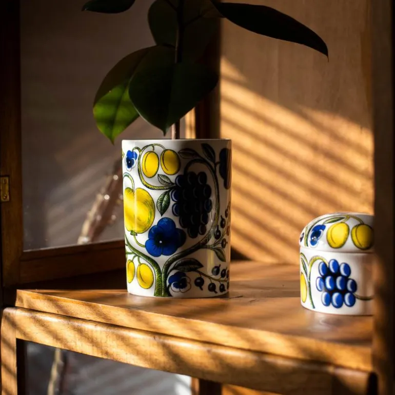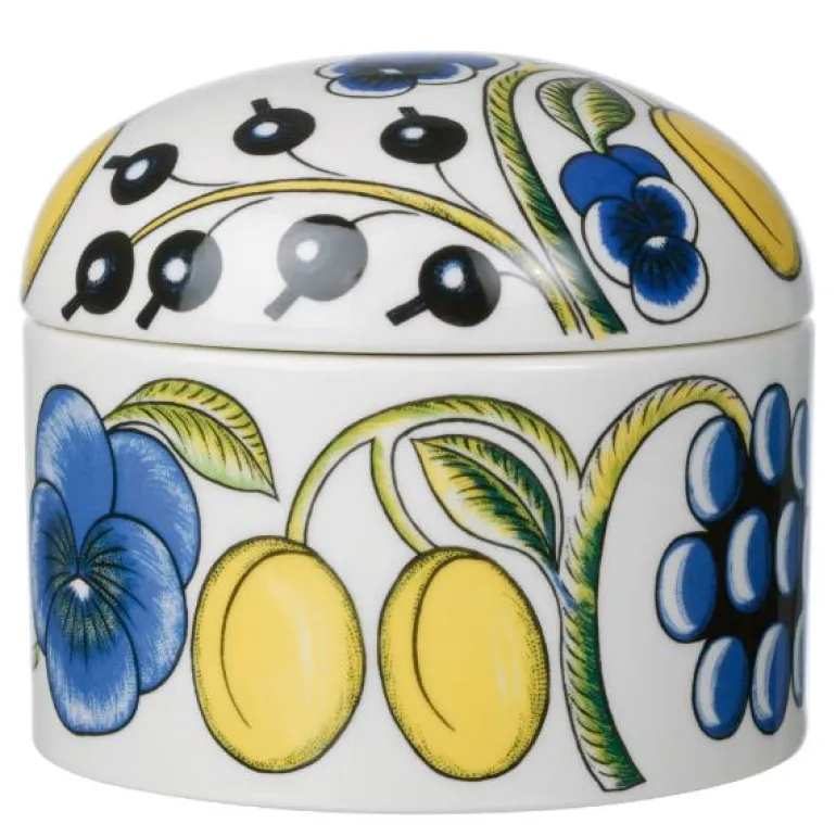 Paratiisi Skål M/Lokk 0,43L. Arabia Paratiisi er en fascinerende klassiker hvor en tidløs form kombineres med en rik dekor. De lyse fargene i dekorasjonene vitner om designeren Birger Kaipiainens unike evne til å kombinere farger. Selv bare en Paratiisi-del i borddekkingen endrer stemningen og gjør hverdagen til en fest. Designer Esteri Tomula. Kan vaskes i oppvaskmaskin.