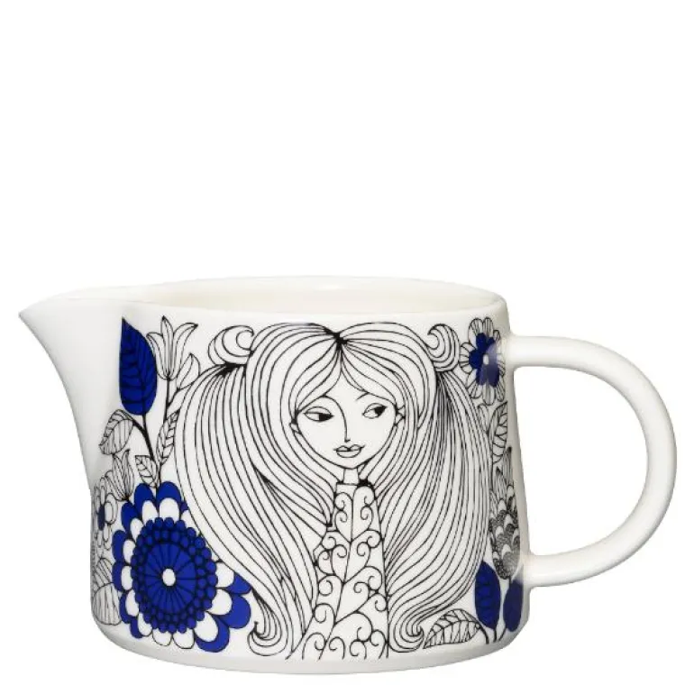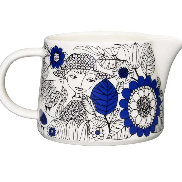 Den allsidige Pastoraali-muggens dekorative mønster er designet av Esteri Tomula. På den detaljerte tegningen gjemmer en vakker dame seg i en frodig og blomstrende hage. Muggen på 0,35L egner seg både som melkemugge til kaffeserveringen og til sauser ved middagsbordet. Kombiner gjerne Pastoraali med andre serviser.
