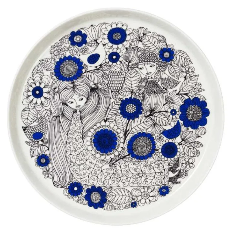 Pastoraali plate 24cm. Mønsteret på det nostalgiske serviset Pastoraali er en fortryllende kjærlighetshistorie. Designer Esteri Tomulas delikate mønster er fylt med detaljer. De moderne formene sammen med mønsteret, som forteller en historie, gjør at Pastoraali skiller seg ut i borddekkingen. Designer Esteri Tomula. Kan vaskes i oppvaskmaskin.