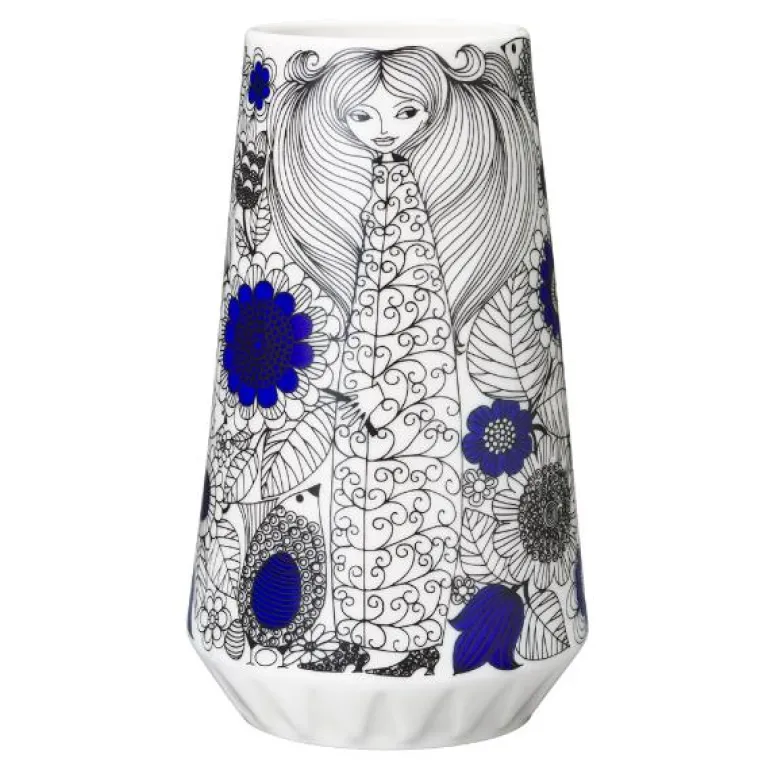Pastoraali vase 19cm. Mønsteret på det nostalgiske serviset Pastoraali er en fortryllende kjærlighetshistorie. Designer Esteri Tomulas delikate mønster er fylt med detaljer. De moderne formene sammen med mønsteret, som forteller en historie, gjør at Pastoraali skiller seg ut i borddekkingen. Designer Esteri Tomula. Kan vaskes i oppvaskmaskin.