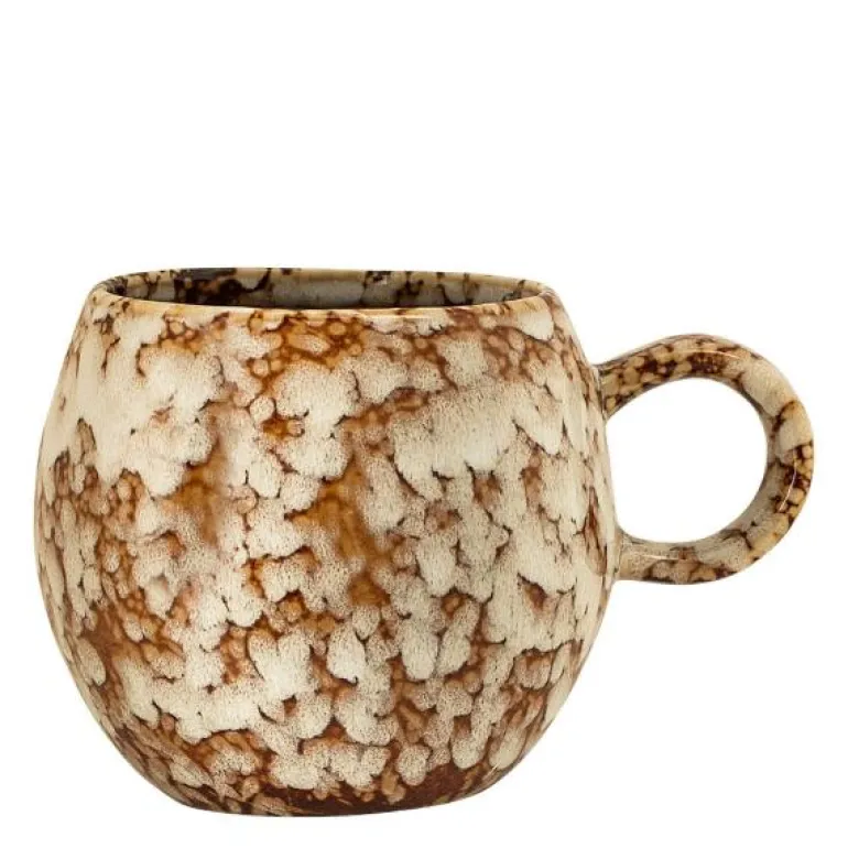 Paula er en fin liten rund kopp med håndtak fra Bloomingville. Den har fin brun og beigefarget glasur, og koppen er laget av steintøy.