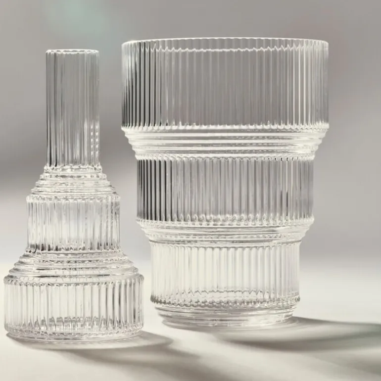 Tulipanvasen i denne serien, laget av krystallklart glass, er spesielt designet for å fremheve skjønnheten i en fargerik bukett. Dens klare glass lar blomstene stå i sentrum, mens den enkle, men sofistikerte formen på vasen tilfører en subtil eleganse til ethvert rom. Med sitt moderne design passer denne vasen perfekt inn i både klassiske og moderne interiører, og den er ideell for å presentere sesongens vakreste tulipaner eller andre favorittblomster. Pavilion tulipanvase er ikke bare et praktisk valg, men også et dekorativt element som løfter innredningen din med sitt rene og stilfulle design.