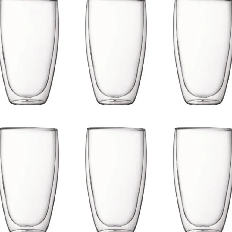 Bodum pavina glass 6-pakning, med en kapasitet på 45 cl. Disse elegante glassene er perfekte for å servere kalde drikker som juice, brus eller vann, og varme drikker som kaffe og kakao. De doble veggene har en termisk kvalitet som holder varme drikker varme og kalde drikker kalde.
