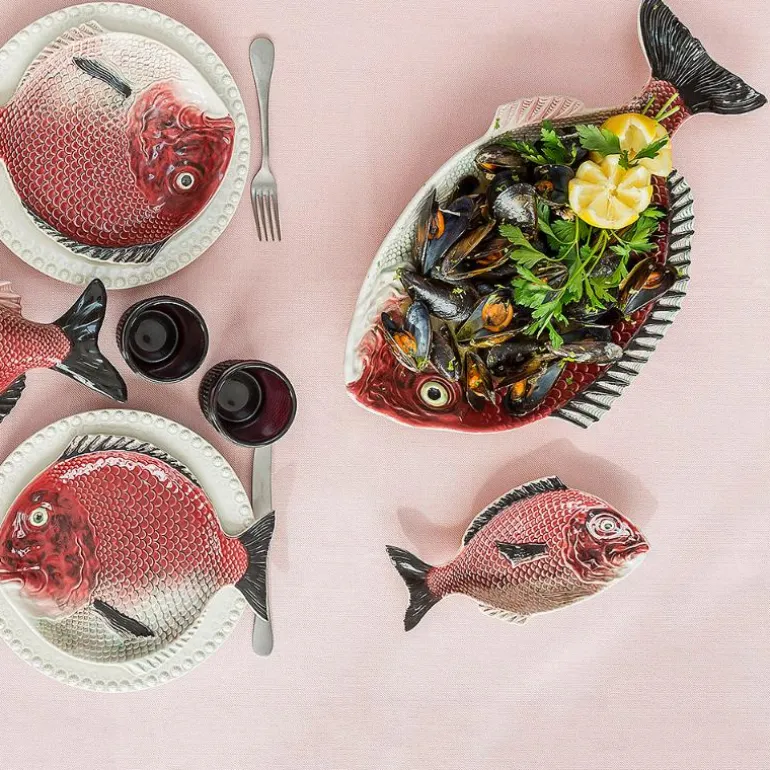 Peixes skål fisk 24 cm. Peixes Skål er en fargerik skål i form av en fisk signert keramikeren Bordallo Pinheiro. Skålen passer utmerket til supper, dessert eller som en dekorativ oppbevaring av småting. Med denne skålen har du et morsomt innslag til borddekkingen. Match gjerne med andre serveringsdetaljer fra Bordallo Pinheiro. Skålen tåler både oppvaskmaskin og mikrobølgeovn.