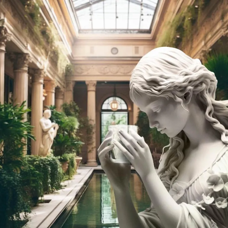 Det store vannglasset er perfekt til alle typer vann, brus og saft med plass til rikelig med is hvis du ønsker det. Samtidig er glasset så stort at det kan brukes til mye annet, for eksempel til å oppbevare blyanter og pensler, slik kunstneren gjør. Den moderne utsmykningen med menneskekropper på tvers av kjønn og alder er et lite kunstverk i seg selv som du gjerne vil ha stående fremme.