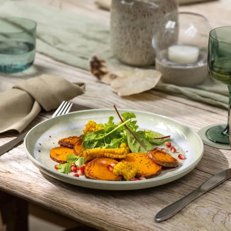 Perlemor Alga tallerken fra Villeroy & Boch måler 27 cm og er laget i skimrende porselen med årets grønntone. Den glansfulle overflaten og rene formen gir et naturlig, men sofistikert uttrykk.
