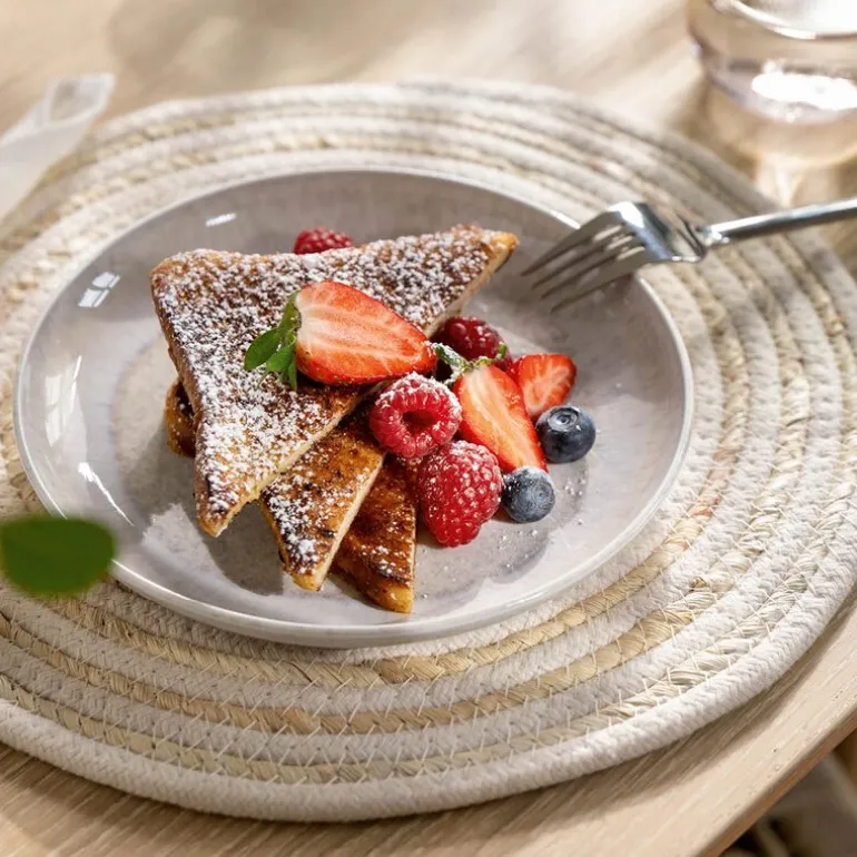 Tallerkenen kombinerer et rustikt, håndlaget utseende med ren, moderne design. Et uttrykk for både kvalitet og karakter – perfekt for en gjennomført og personlig borddekking.