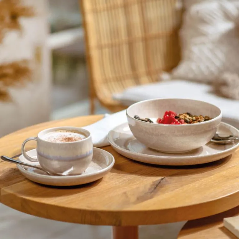 Perlemor Sand Kaffekopp 27 cl i beige fra Villeroy & Boch er den perfekte koppen for en rolig morgenkaffe. Med sitt elegante design og naturlige fargetoner tilfører denne koppen en varm atmosfære til enhver borddekking. Koppens håndglaserte steintøy gir en unik karakter, der den reaktive glasuren skaper subtile fargevariasjoner, noe som betyr at ingen kopp er helt lik – hver del blir et lite kunstverk. Matchende fat er tilgjengelig, og koppen kan enkelt kombineres med andre deler fra serien for å skape en helhetlig og innbydende stil.