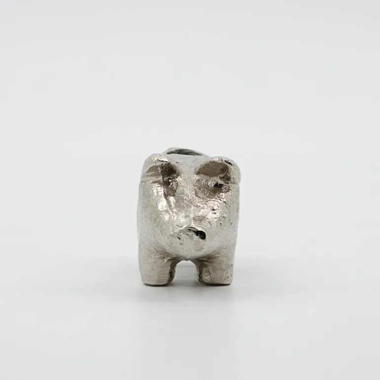 Pig lysestake fra House Doctor er en sjarmerende og leken detalj som gir julepynten din en unik vri. Denne håndlagde antikke sølvlysestaken er laget av aluminium med en sølvfinish som gir den en diskret, men likevel morsom karakter. Med en høyde på 8,5 cm er den perfekt å plassere i juleborddekningen som en overraskende detalj eller blant favorittpyntene dine i vinduskarmen.
