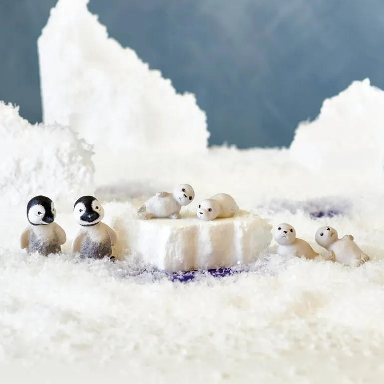 Pingvinene Pingo og Pjevs fra Klarborg er to livlige små babypingviner som sprer glede og vinterstemning. Med sine myke dun og rampete uttrykk elsker de å boltre seg i snøen – fra tidlig morgen til solen forsvinner bak horisonten. Når dagen går mot kveld, kryper de sammen og tar en velfortjent lur.