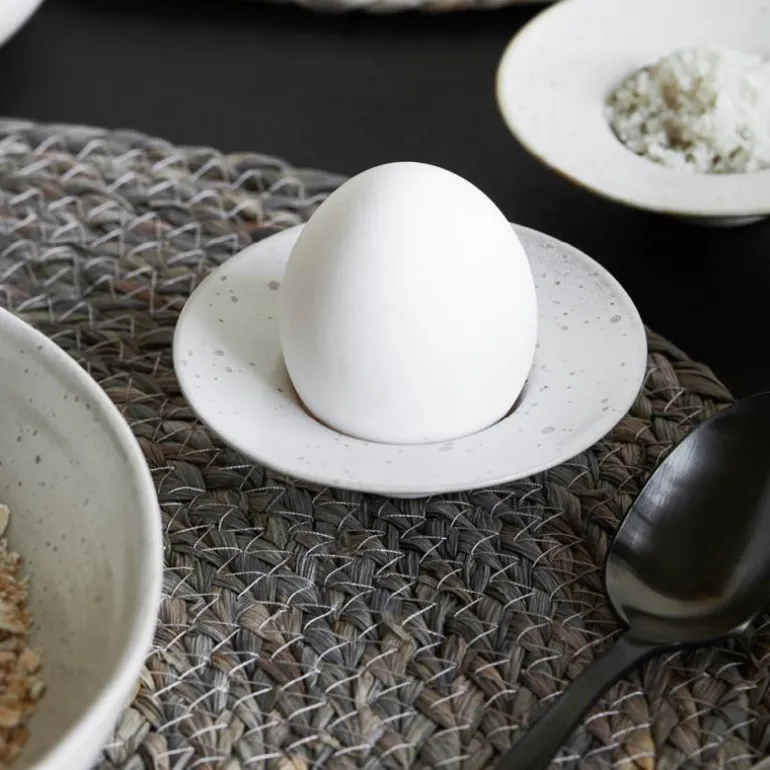 Unn deg selv og familien et bløtkokt egg til frokost på langsomme morgener når du har massevis av tid. Med dette settet bestående av 4 Pion eggeglass i grå/hvit, fra House Doctor, serveres de med en diskré stil. Steintøyet har fått en hvit glasur med flekker, noe som gir det generelle designet et uformelt preg. Bruk eggeglassene sammen med Pion-middagsserviset for å dekke et bord eller du kan gå den uformelle, personlige veien ved å blande middagsservisene om hverandre.
