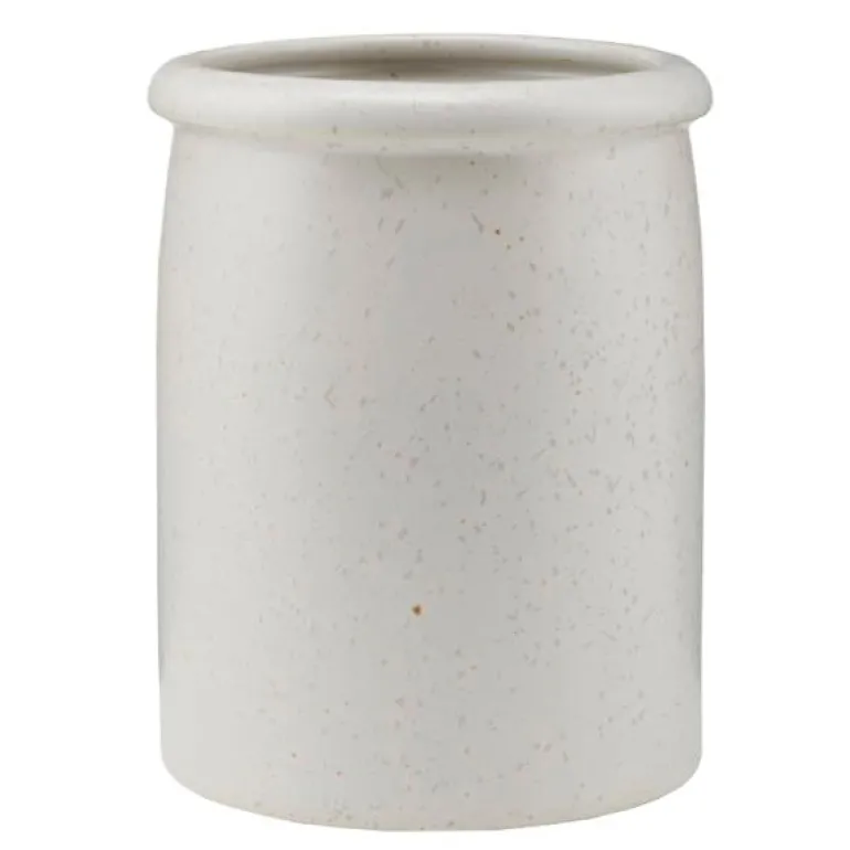 Organiser kjøkkenartiklene dine med stil med krukken Pion fra House Doctor. Den er laget av porselen og er avsluttet med en hvit, flekkete glasur som gir den et fint, men uformelt preg. I stedet for å ha stekespader, visper og treslever i skuffen, still dem fram på kjøkkenbenken og ha dem i nærheten når du skal bruke dem i hverdagens matlaging. Krukken er et fint tillegg til kjøkkeninnredningen og vil passe godt til enhver stil og fargevalg.