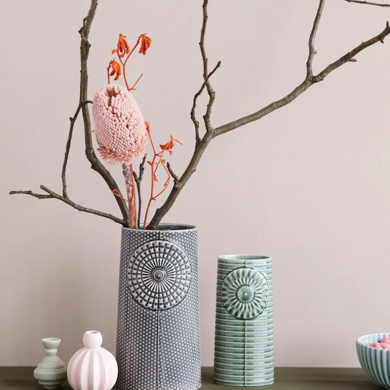 Pipanella Lines Oval vase i Grønn fra Dottir er et elegant og harmonisk design, laget for å tilføre rommet en følelse av ro og naturlig skjønnhet. Designet av Thora Finnsdottir, har vasen en slank, oval form og rene linjer som skaper en beroligende atmosfære, perfekt som midtpunkt eller som en dekorativ aksent i hjemmet. Den myke grønne glasuren gir vasen et forfriskende preg og en subtil forbindelse til naturen, noe som lyser opp rommet og tilfører en følelse av harmoni.