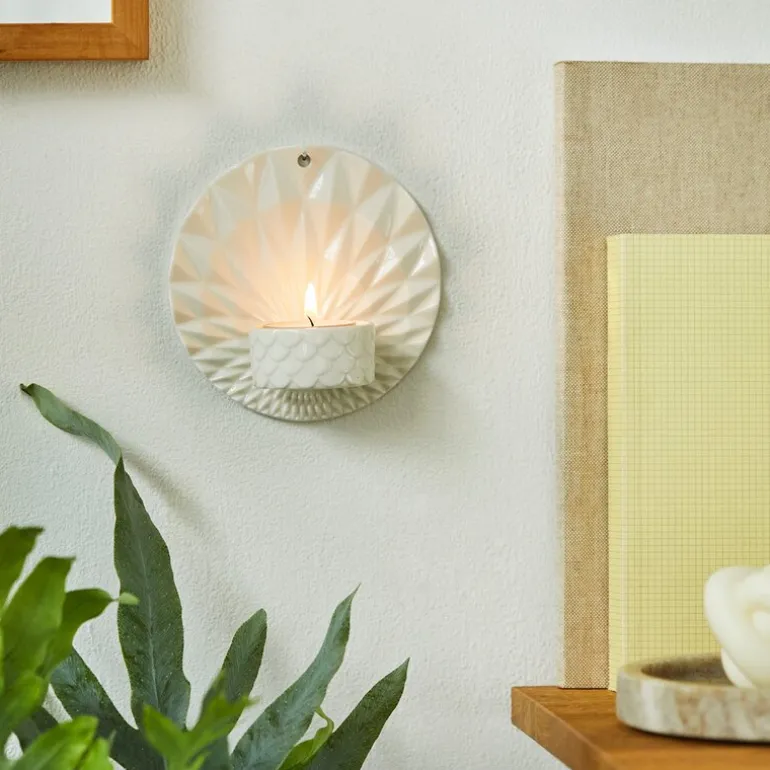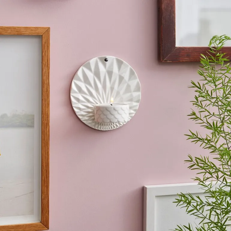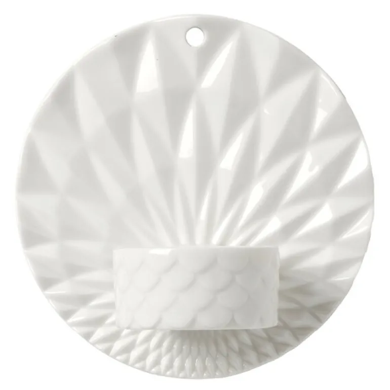 Den hvite glasuren gir Pipanella Wall Votive en tidløs og allsidig stil som passer inn i mange ulike interiører, og den glatte, blanke overflaten forsterker stearinlysets myke glød. Med sin størrelse på 11,5 cm i diameter, er denne kompakte, men virkningsfulle lysestaken perfekt som en dekorativ aksent i gangen, stuen eller på soverommet.