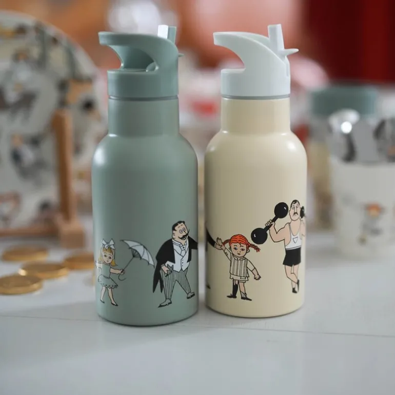 Denne livlige Pippi vannflasken Sirkus gul fra Rätt Start er laget av høykvalitets stål og rommer 0,34 liter. Med sin termosfunksjon holder den drikken varm eller kald en stund, noe som gjør den ideell for både korte turer og lange dager i barnehagen.