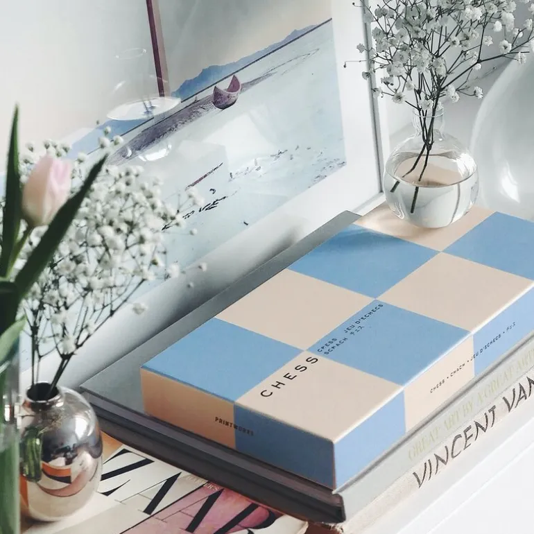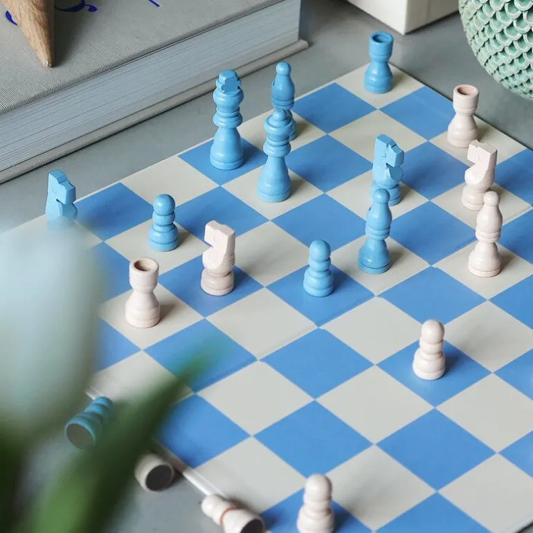 Sjakkspillet som kombinerer klassisk strategi med moderne design. Dette settet har en himmelsblå palett som tilfører et friskt og sofistikert preg til både spillkvelder og interiøret hjemme.