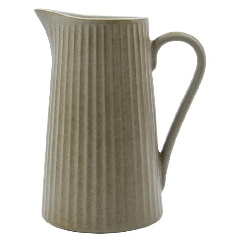 Pleat kanne 21 cm grå/brun, fra House Doctor. En stor kanne fra House Doctor både til hverdag og fest. Server juice eller vann i denne tidløse og fine kannen i rillet design. Matt på utsiden og blank på innsiden – det skaper en fin detalj på bordet ditt, spesielt sammen med enklere og mer hverdagslig servise. Den kan også brukes til friske blomster fra hagen og som en improvisert vase på bordet.