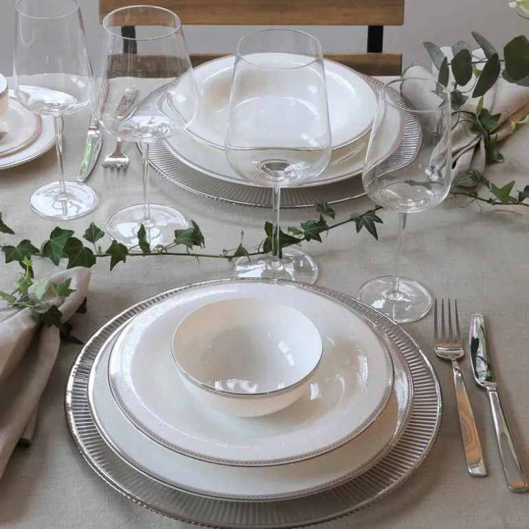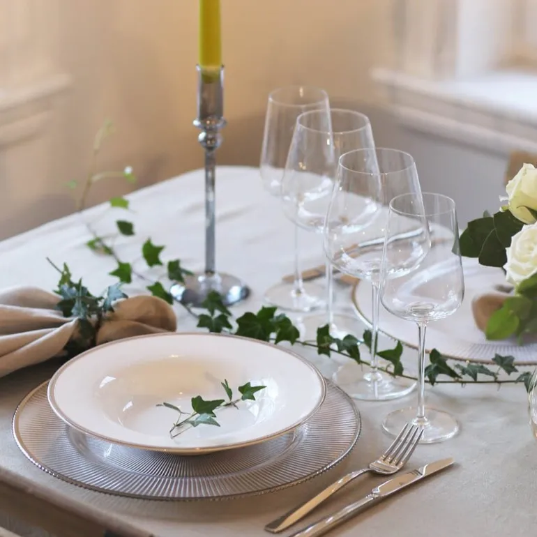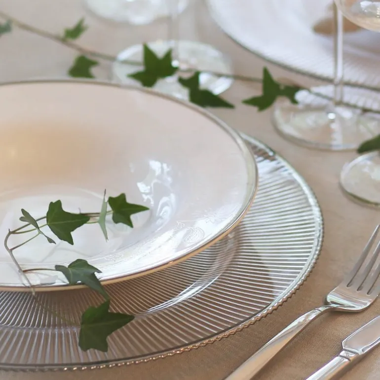 Plisse dekketallerken fra Stiernholm med en diameter på 33 cm, laget av gjennomsiktig glass med et stilrent plissemønster og en diskret sølvkant. Denne tallerkenen tilfører borddekkingen et sofistikert uttrykk og passer til både hverdagsmiddager og festlige anledninger. Glassmaterialet gir et elegant preg, mens den subtile sølvkanten rammer inn tallerkenen på en smakfull måte. Diameteren er 33 cm, men kan avvike med opptil 0,5 cm som følge av produksjonsprosessen.