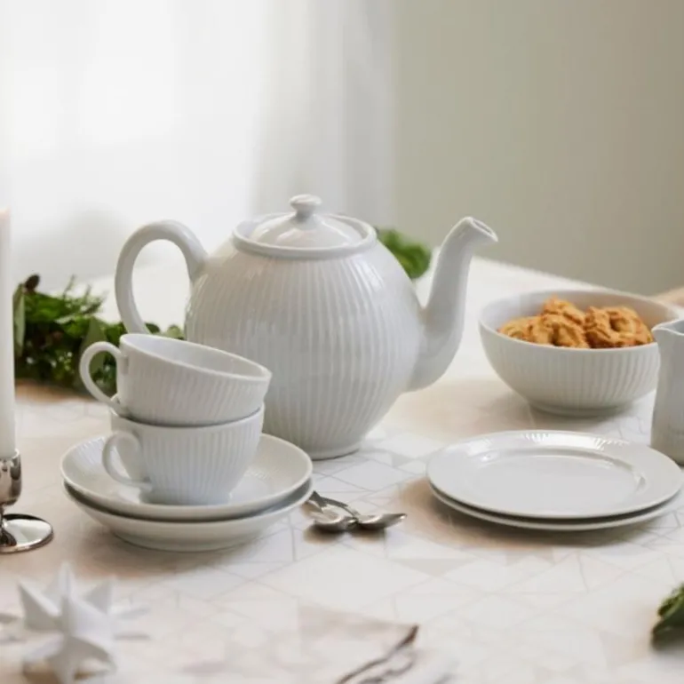 Tekannen har en kapasitet på 1,5 liter er den ideell for flere kopper te. Den har et tidløst design med plisserte linjer gir en unik og elegant stil. Det hvite designet passer perfekt med ulike typer servise.