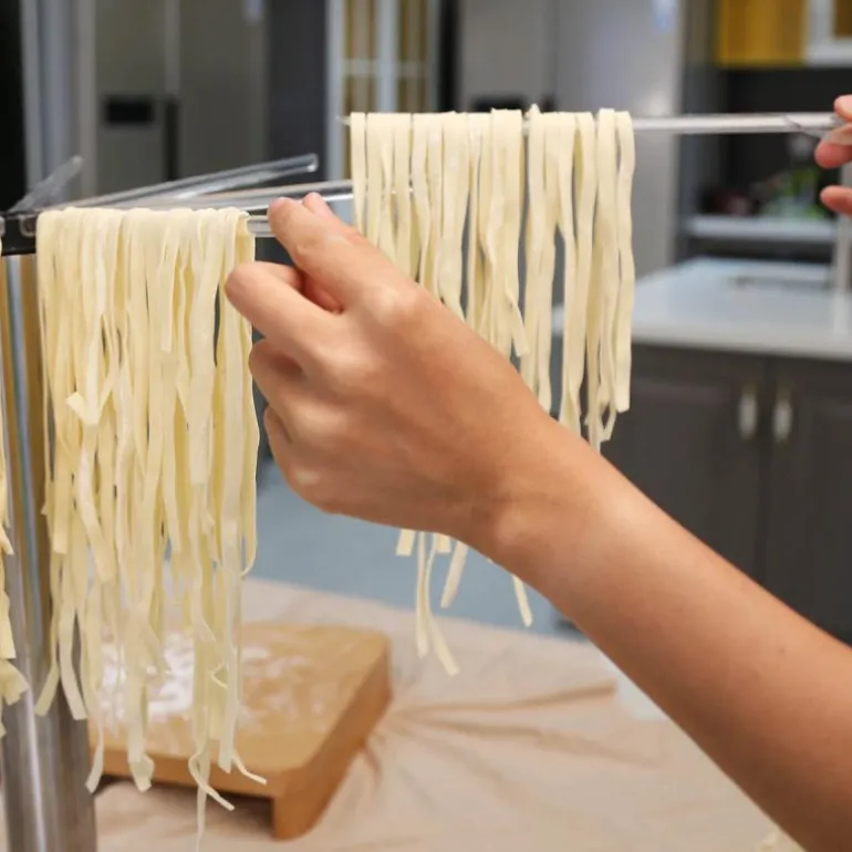 Hjemmelaget pasta vil glede hele familien. Men hvor skal man legge tagliatelle eller spaghetti før den går i gryten? På pastatørkeren PLUS PASTACASA fra KÜCHENPROFI. Åtte armer i rustfritt stål gir nok ledig plass slik at nudlene ikke berører og fester seg. I motsetning til oppbevaring på stekeplate eller kjøkkenbord, tørkes pastaen grundig fordi luften sirkulerer optimalt.