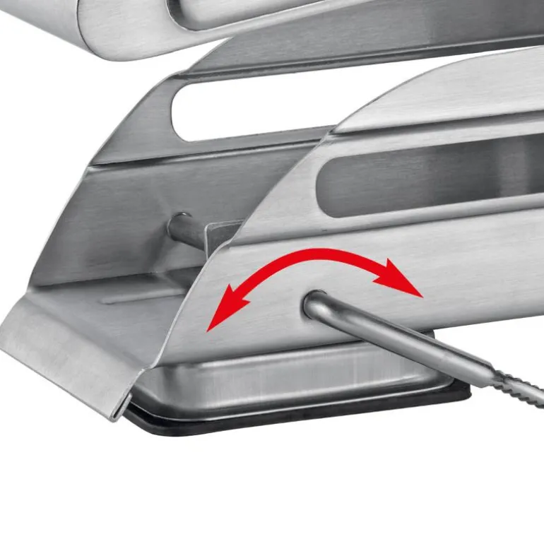 Lag 36 pinner av poteter eller grønnsaker i én operasjon. De skarpe stålbladene garanterer et nøyaktig skjæreresultat. Sett poteten eller grønnsaken i maskinen, trykk håndtaket ned og pinnene skyves automatisk ut gjennom det skarpe gitteret.