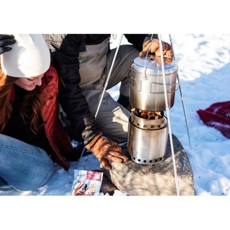 Kjele, Pot 4000, til Solo Stove turkjøkken. Kjelen erlaget i premium rustfritt stål, og rommer 4 L. Når kjelen ikke er i bruk, kan Solo Stove Campfire turkjøkken legges inni den for kompakt lagring!Solo stove pot 4000 kommer med dobbelt håndtak for lett grep, en hank til å henge opp kjelen i og volum merker på innsiden. Lokket sitter godt på og har et silikon polstret håndtak.Kjelen kommer med en svart, praktisk trekk i nylon.Mål:Høyde: 18,5 cmDiameter: 18,5 cmVekt: 822 gram