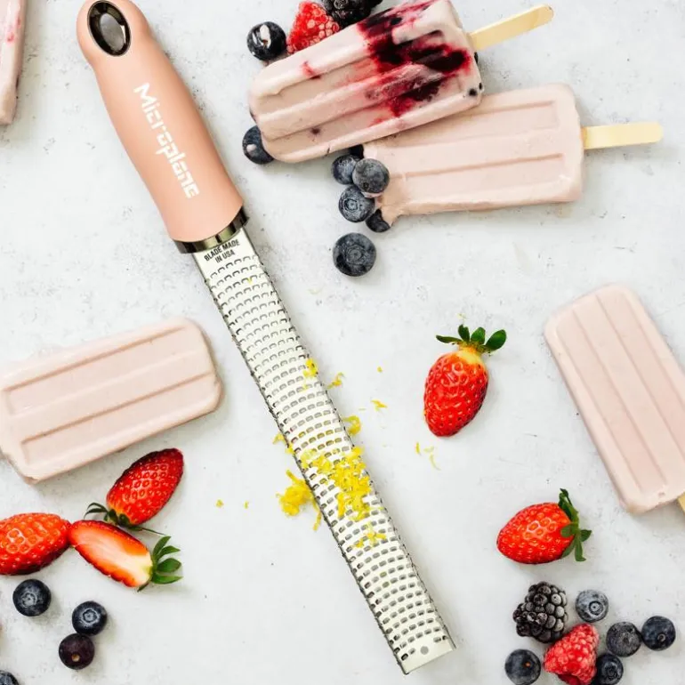 Premium classic zester rosa, fra Microplane. Rivjernene i Microplanes Premium Classic serie er laget med sklisikkert grep.Som med alle andre rivjern fra Microplane er det imidlertid det skarpe rivjernet som er det viktigste. I motsetning til tradisjonelle rivjern, forblir kantene på Microplanes rivjern knivskarpe.Leveres med sikkerhetscover og tåler selvfølgelig oppvaskmaskin.Passer bra til bl.a sitrus, hvitløk, parmesan og muskat.