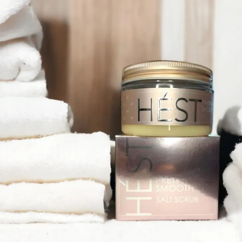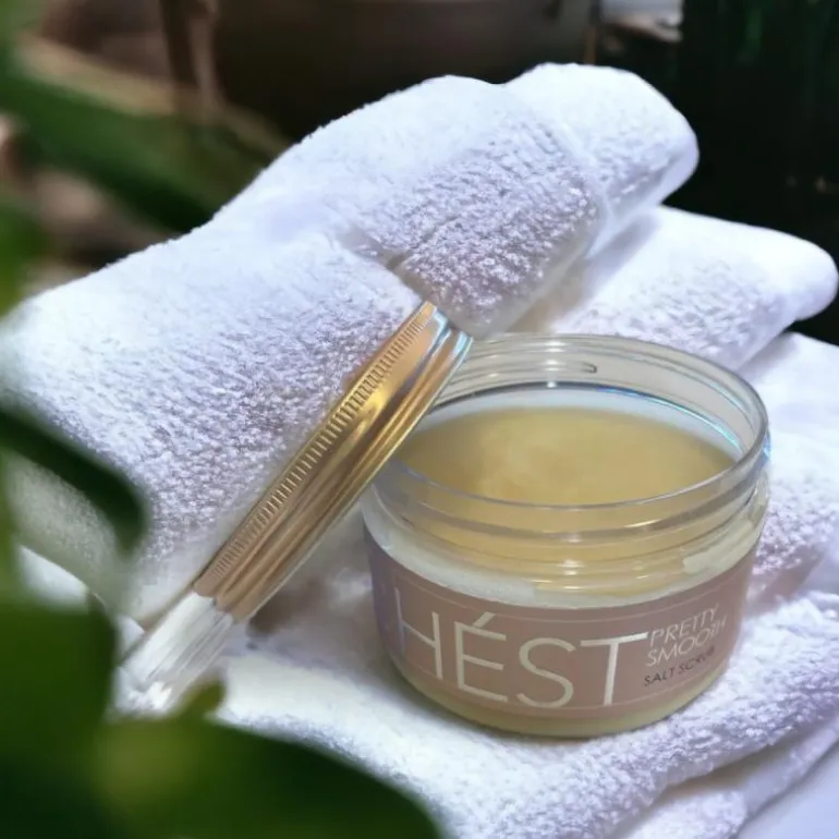 Saltskrubb – Pretty Smooth er en luksuriøs Saltskrubb, en overdådig blanding av naturens fineste ingredienser som styrker og forynger huden din. Denne utsøkte skrubben kombinerer mineralrikt havsalt fra Middelhavet med nærende vegetabilske oljer fra solsikke, søte mandler og druefrø. Sammen skaper de en harmonisk symfoni for hele kroppen din.