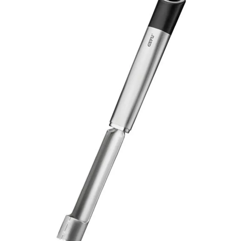 Primeline kjerneutstikker fra Gefu er et effektivt redskap for å fjerne kjerner fra epler og pærer. Den er laget i rustfritt stål og måler 22,8 cm. Den taggete skjærekanten glir lett gjennom fruktkjøttet og gjør kjernefjerningen rask og enkel. Dette verktøyet er spesielt nyttig ved baking, der epler ofte inngår som ingrediens.