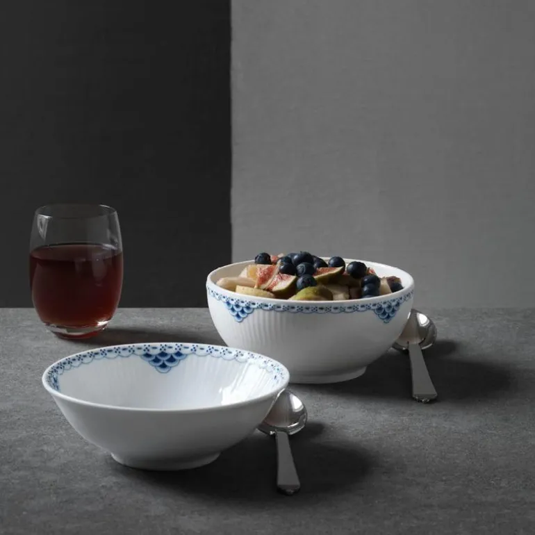 Prinsesse porsjonsskål 35 cl. Prinsesse-serien er romantisk med et lett uttrykk. Opprinnelig ble det designet som et teservise, men i 1978 ble mønsteret produsert som et fullt middagsservise. Den håndmalte, elegante blondekanten kan minne om mønsteret i Musselmalt-serviset.