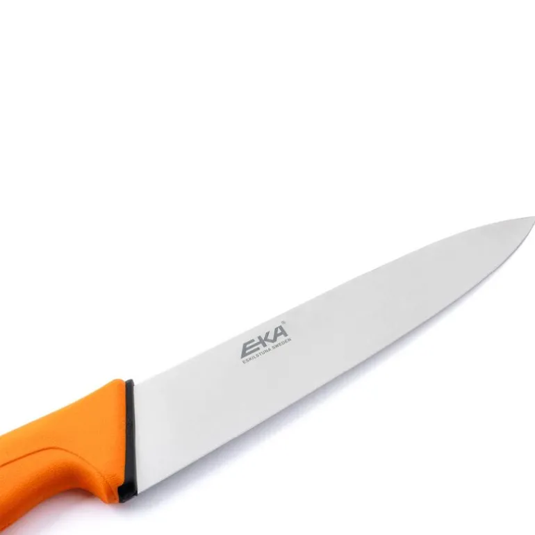 EKA Pro kokkekniv 20 cm oransje er et allsidig verktøy som er skapt for å håndtere et bredt spekter av oppgaver på kjøkkenet. Den lange, ergonomisk utformede kniven kutter, hakker og skjærer med presisjon, enten du arbeider med kjøtt, grønnsaker eller andre råvarer. Dette gjør kniven til et uunnværlig redskap for profesjonelle kokker, hjemmekokker og til og med jegere.