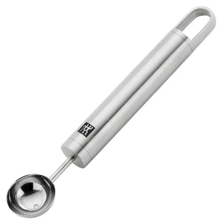 Kulejern 17,5 cm fra Pro-serien til Zwilling. Med dette kulejernet graver du enkelt ut kuler fra alt fra poteter, agurk, epler og melon til iskrem, karamell og ost. La fantasien flyte når du dekorerer både bakverk og middager! Kulejernet har et ergonomisk håndtak og er lett å rengjøre. Den har også en hempe slik at du kan henge den opp når den ikke brukes.