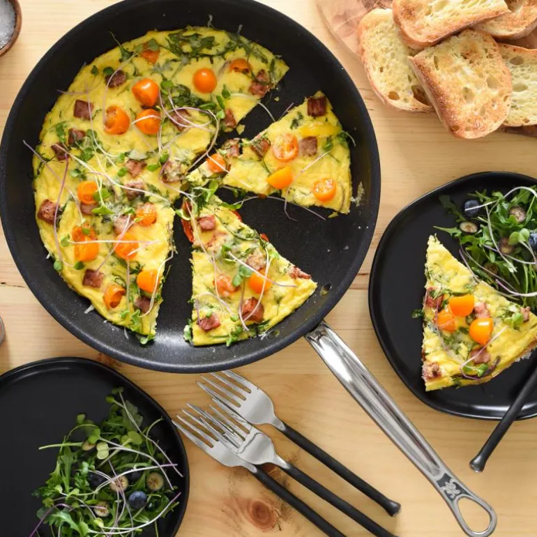 Avsluttet med Hestans eksklusive TITUM® nonstick-system, har disse stekepannene et 5-lags system bestående av 3 lag nonstick, forsterket med diamantpartikler og forankret i pannen med holdbar titanplasmateknologi.