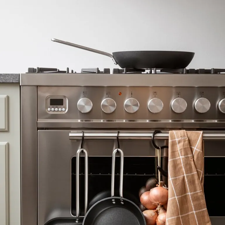 - Den tåler oppvaskmaskin, men det anbefales å vaske pannen for hånd med oppvaskmiddel for å beholde slippevnen. Bruk aldri stålull eller slipende midler til rengjøringen.