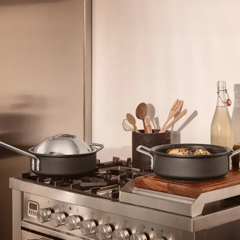 Pannen tåler temperaturer opp til 400 °C og er kompatibel med alle varmekilder, inkludert induksjon. Vi tilbyr 5 års belegggaranti og 25 års garanti på at pannen holder formen og ikke blir skjev i bunnen. Selv om pannen kan vaskes i maskin, anbefales håndvask for å opprettholde de beste slippegenskapene.