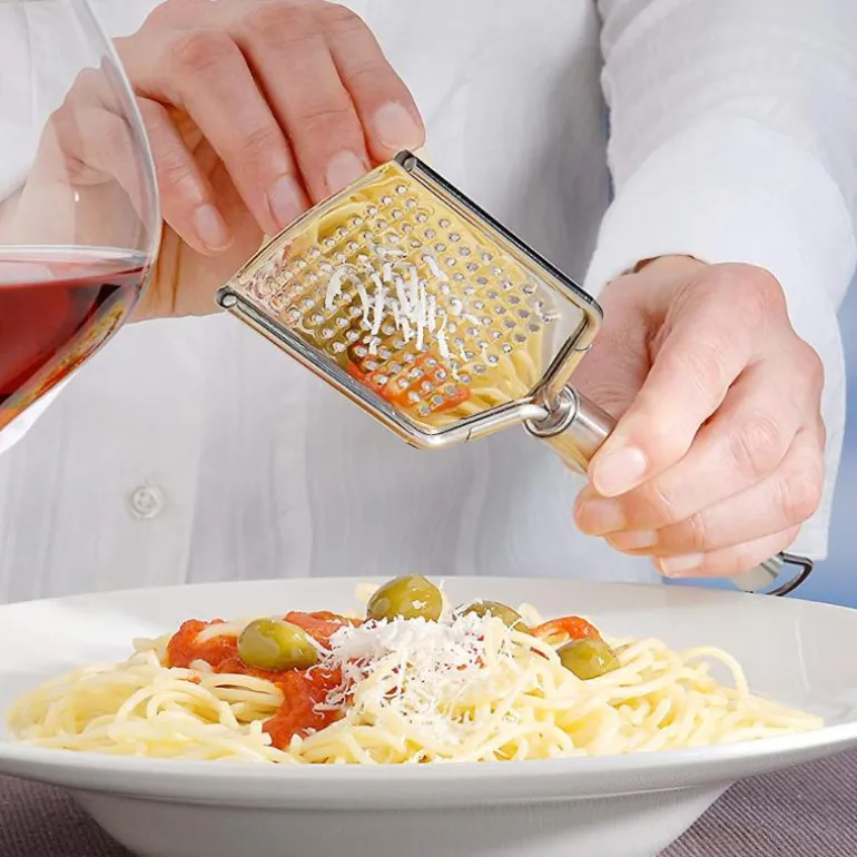 WMF rivjern lar deg tilsette det siste lille ekstra til pasta- eller gryteretten din på et blunk. Rivjernene er laget av Cromargan® rustfritt stål og er ekstremt stabile og holdbare. Rivjernene fra Profi Plus og Black Line-serien har et attraktivt moderne design og praktiske hengeløkker i enden for enkel oppbevaring. Black Line-rivjernet har også et sklisikkert håndtak med mykt grep så du kan rive lekende lett og i lang tid.