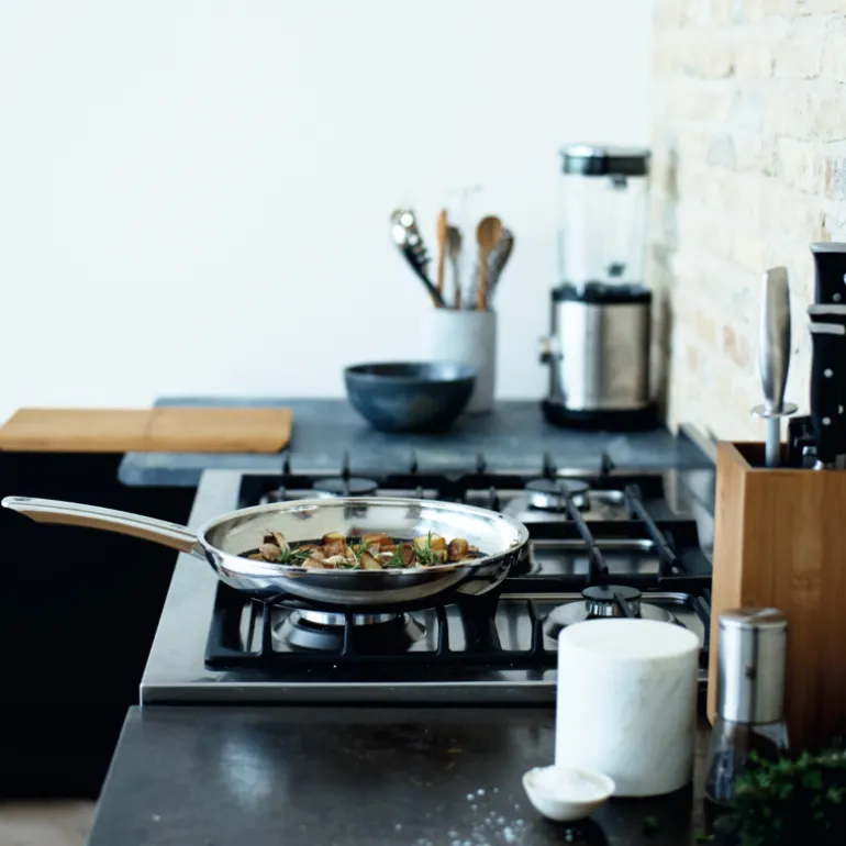 - Materiale i 3 lag: Cromargan® rustfritt stål 18/10 innvendig, aluminium i kjernen og kromstål utvendig