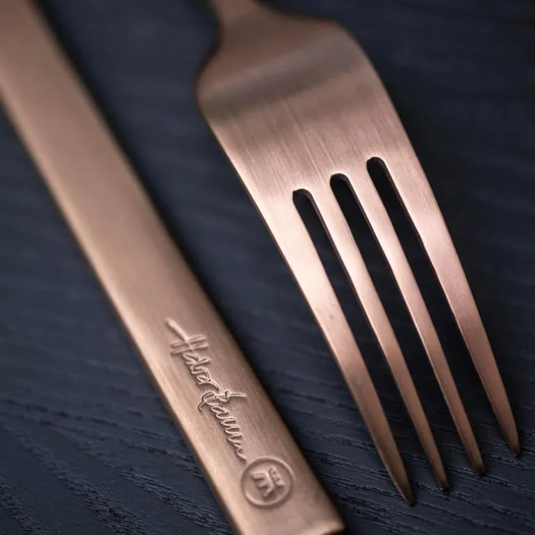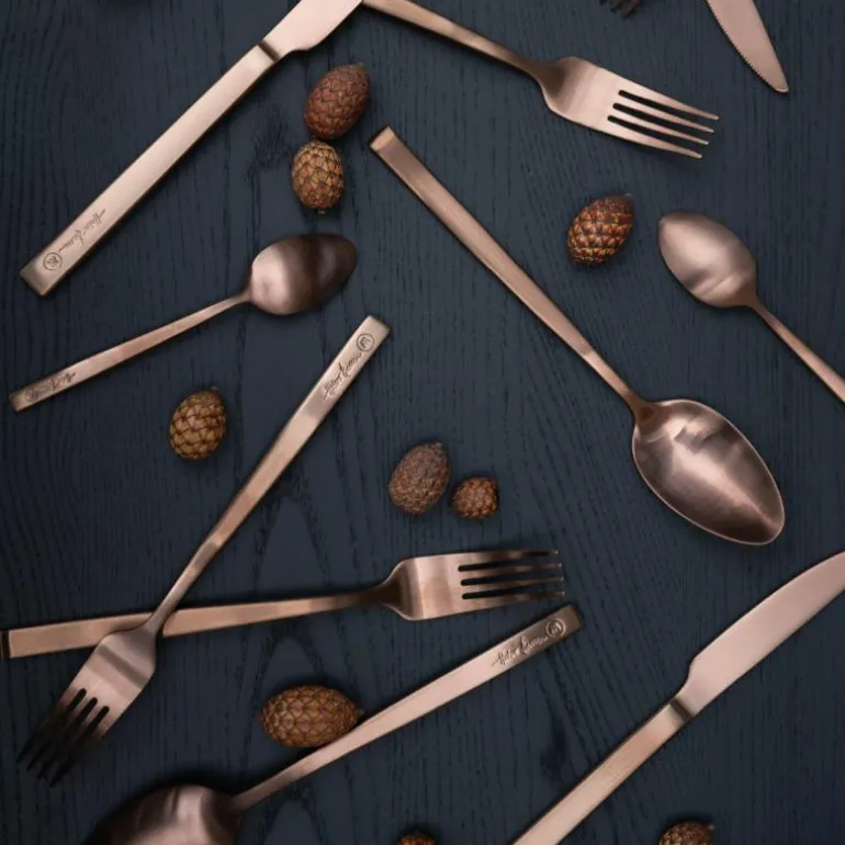 Inspirasjonen til fargen MOLE, som betyr muldvarp, har Halvor Bakke hentet fra sitt interiørunivers. Her valgte han de gyllne og varme muldvarp-tonene fra fargekartene og overførte de til bestikk. Fargenyansen MOLE er dempet og skaper harmoni. Den passer perfekt til dagens uttrykk på serviser, og vil garantert bli en pryd på bordet.