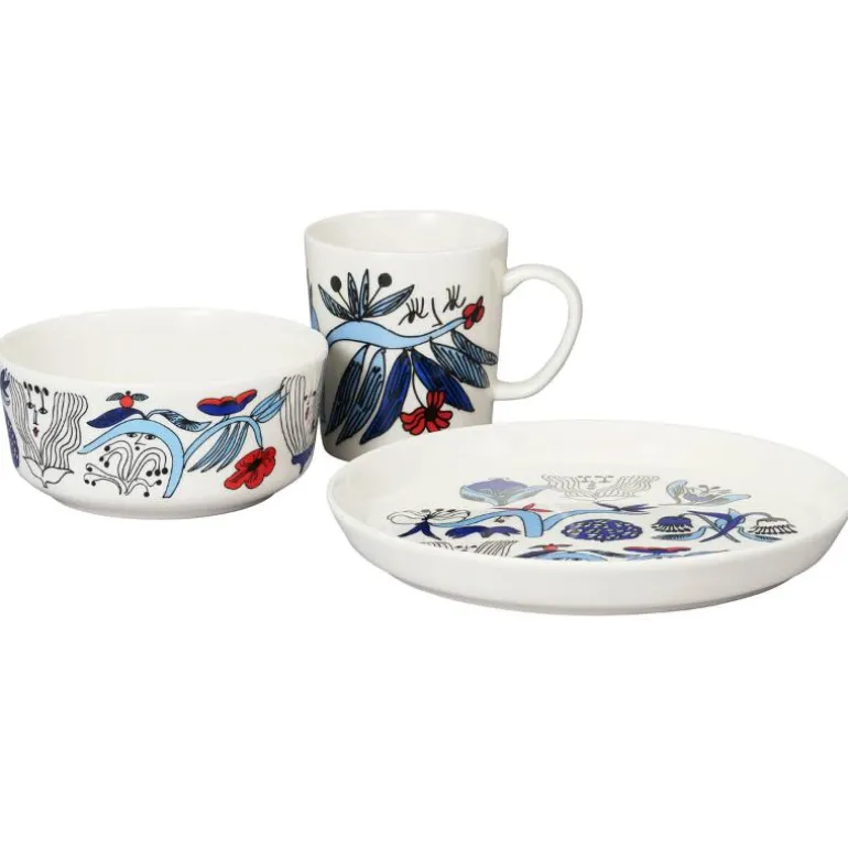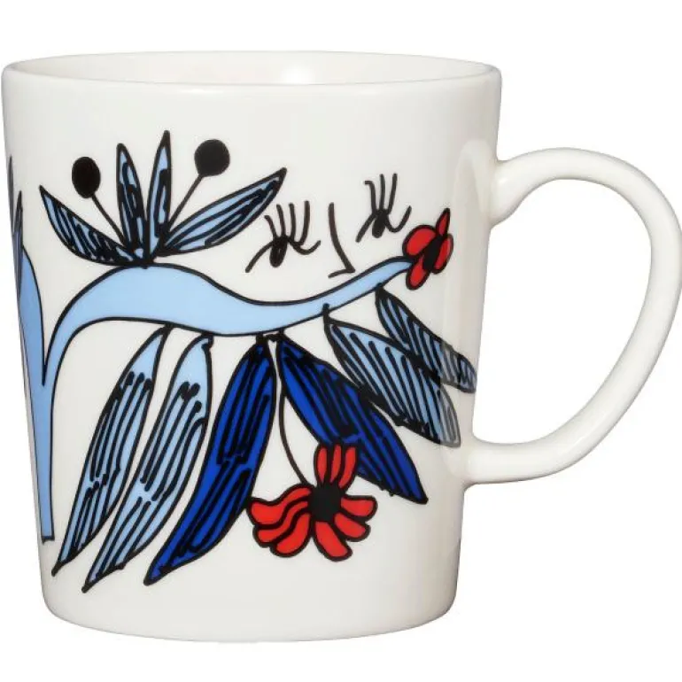 Puutarhurit-kruset er dekorert med et interessant blåfarget mønster der morsomme figurer titter ut fra hageplantene. Kunstneren Armi Tevas Puutarhurit-mønster er egnet for å kombinere med andre Arabia-design. 0,3 l krus er en passende størrelse for mange varme drikker som te, kaffe eller kakao.