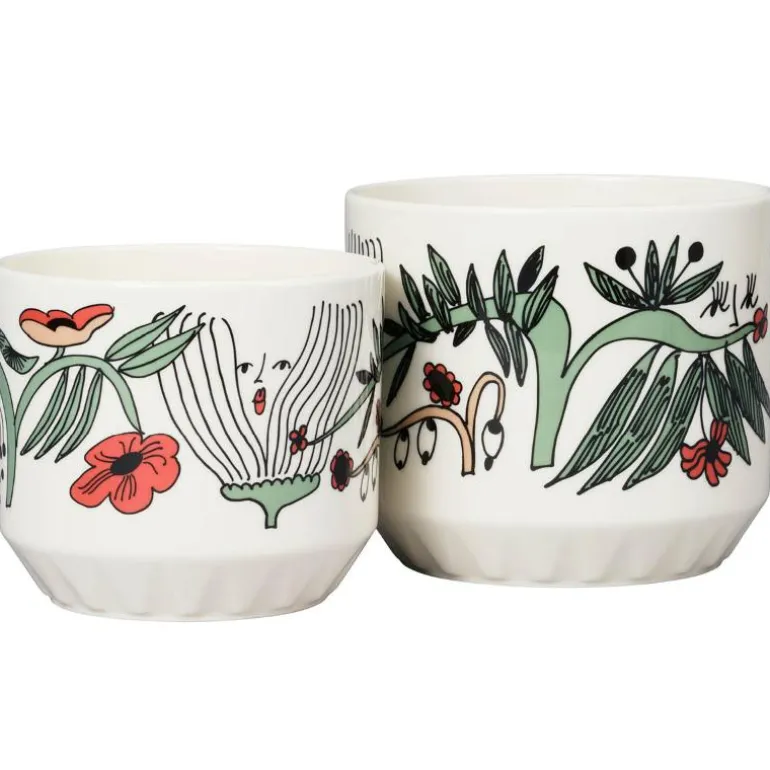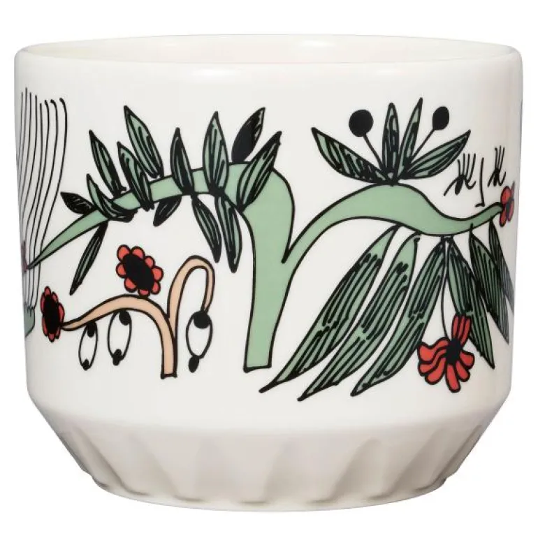 Puutarhurit-mønsteret, skapt av kunstneren Armi Teva, pryder den nye potteskjuleren i Arabias populære mønsterserie. Armi Tevas fascinerende og morsomme figurer og den interessante utformingen av potten er ideelle for grønne planter og blomster. Fargevalget til Puutarhurit-mønsteret passer vakkert inn med de andre dekorasjonene i Arabias mønsterserie.