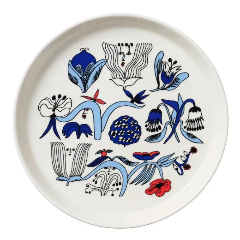 Puutarhurit-mønsteret, skapt av kunstneren Armi Teva, er en frisk blåfarget hage med lekne figurer som titter ut fra plantene. Puutarhurit 19 cm tallerkenstørrelse er egnet for både frokost, forrett og snacks. Kombiner Puutarhurit-mønsteret med andre populære design fra Arabia.
