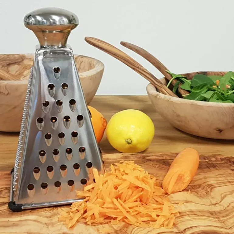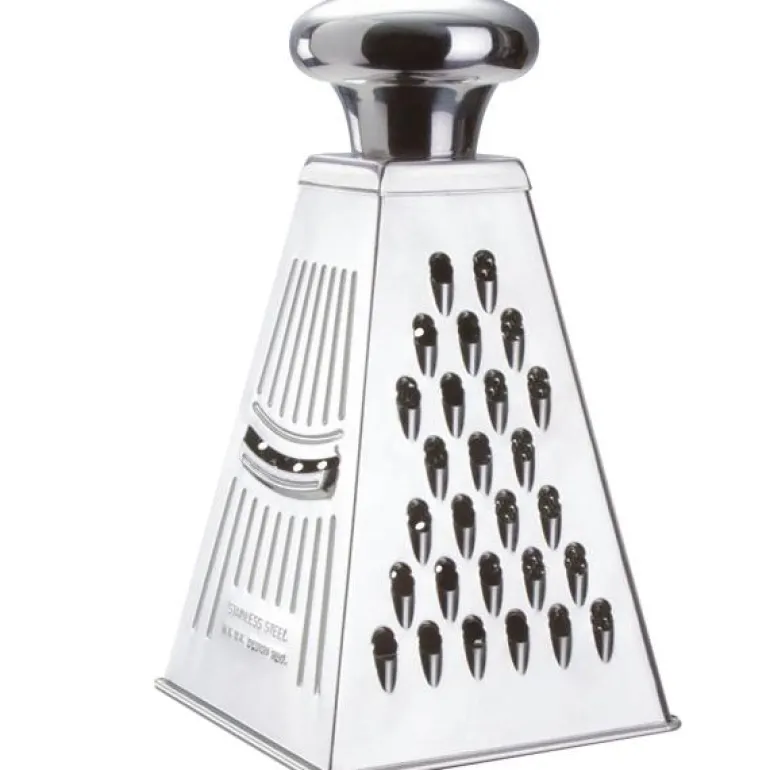 Rist, riv, skjær. Fra grov til ultrafin. Robust rustfritt stål. Ferske råvarer og riktig verktøy er grunnlaget for et deilig måltid. Med det 4-sidige rivjernet fra KÜCHENPROFI kan du behandle frukt og grønnsaker raskt, rent og på mange forskjellige måter. Det klassiske 4-sidige rivjernet, som også finnes i jumboversjon, har et grovt rivjern for rå grønnsaker og ost og et fint rivjern for å hakke krydder. Kronehøvelen gjør rundstykker og sjokolade til smuler og gir eplebiter til Bircher-müsli. Sist men ikke minst: agurkklistremerket. Det 4-sidige rivjernet PROFI har i tillegg rivjern, grovt rivjern og stikker ut en grov zester for hvitløk eller chili og en fin for sitroner, nøtter, ingefær og muskatnøtt. De pyramideformede QUADRO rivjernene kombinerer den praktiske funksjonen til grove, fine og krone rivjern samt agurkskjærere med et moderne design. Alle modellene er laget av rustfritt stål, kan holdes sikkert i håndtakene og kan vaskes i oppvaskmaskin.