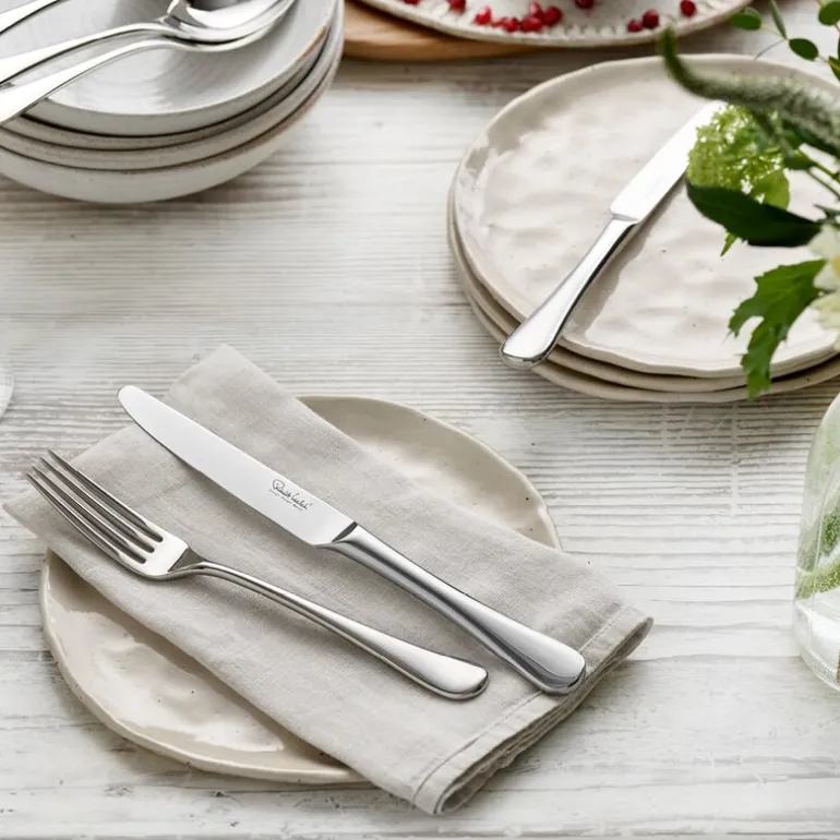 Radford Bright bordkniv er et elegant og tidløst valg til både hverdag og fest. Med sitt klassiske formspråk og speilblank finish tilfører den et raffinert uttrykk til enhver borddekking. Kniven er laget av spesielt herdet rustfritt stål for optimal skarphet og varighet, og balanseres perfekt i hånden.