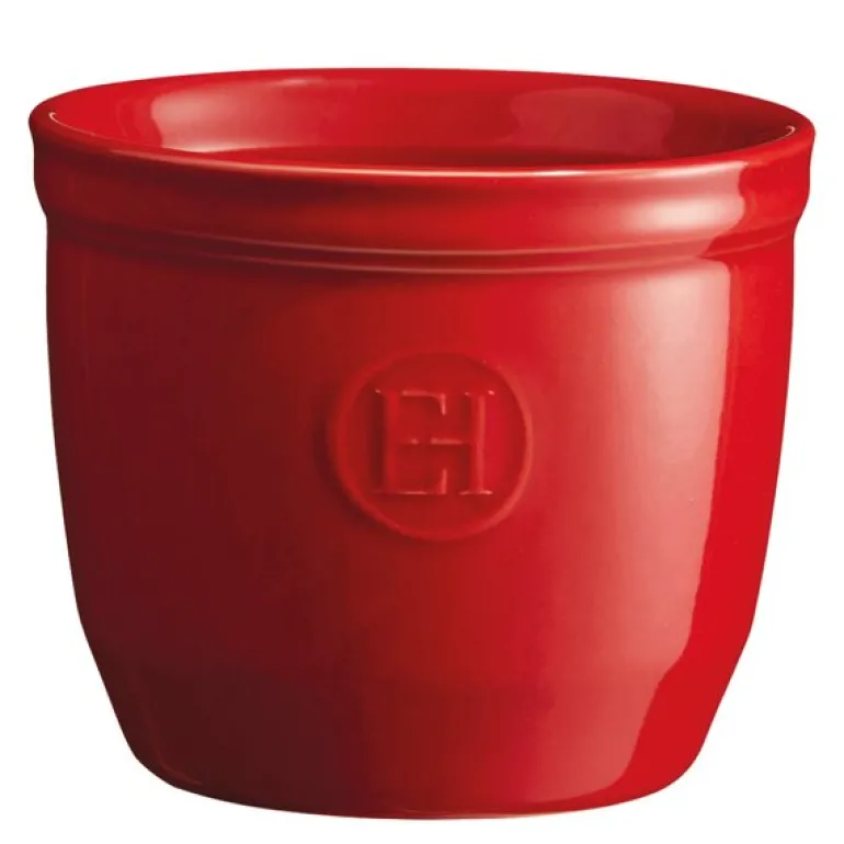 Den røde ramekinen n°8 fra Emile Henry, 8,5 cm i diameter, kombinerer funksjonalitet og stil. Skålen er laget av HR-keramikk som sikrer at retten tilberedes jevnt og holder på fuktigheten. Med en temperaturtoleranse fra -20 til 270 grader er den egnet for både ovn og fryser, og den ripebestandige glasuren holder seg fin selv ved hyppig oppvask. Denne høyere modellen er ideell for suffléer og andre hevede desserter. Emile Henrys franske håndverk og 10 års garanti gir ekstra trygghet.