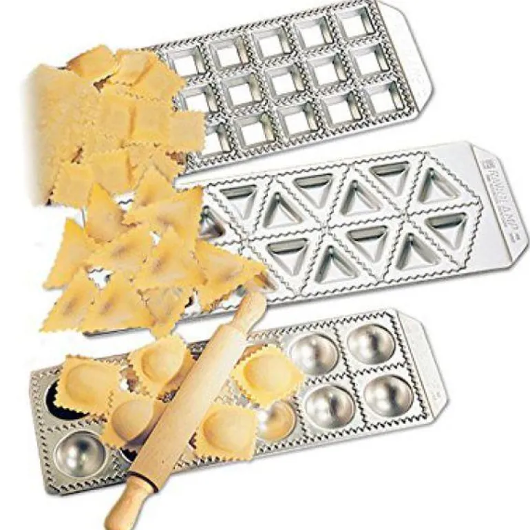 Skal du lage ravioli er dette settet en god hjelp når du skal ha i fyll. Formene er laget av presset aluminium og leveres med en hendig kjevle. La Imperia pastamaskinen gjøre jobben med deigen først. Gummiføtter under formene for godt grep. Produsert i Italia.