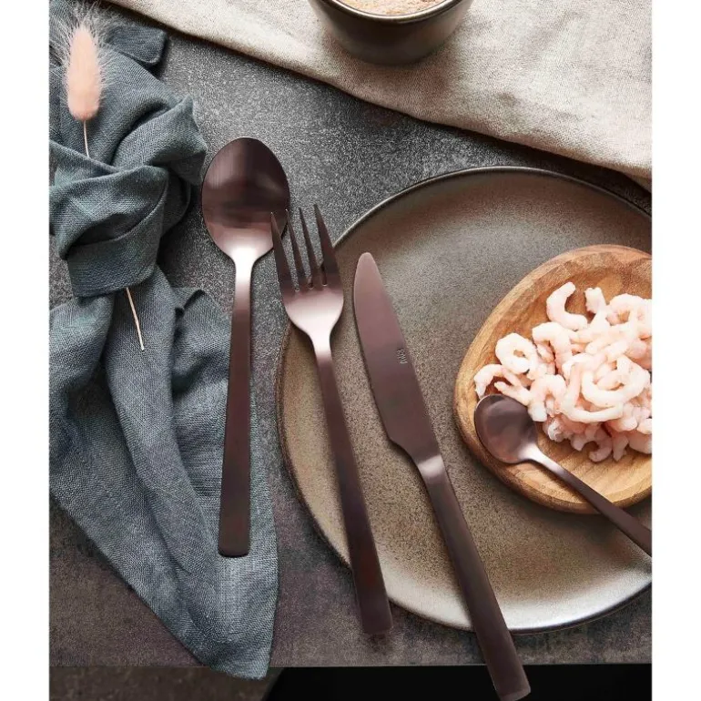 Aida RAW bestikksett med 16 deler i matt rose gir deg den perfekte kombinasjonen av stil og funksjonalitet. Dette slitesterke bestikksettet er laget av rustfritt stål, og den matte rosegullfargede overflaten lyser opp bordet.