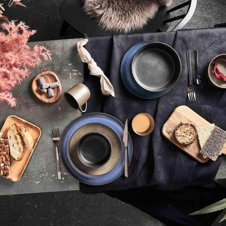 RAW Glasuren: Det brukes mange mekanismer for å skape utseendet på det elegante RAW steintøyet. Glasuren på steintøyet består ikke av en homogen, fast farge, men varierer i farge og tekstur på grunn av den kjemiske prosessen i ovnen. Her utvikler glasuren seg forskjellig fra del til del, og derfor varierer serviset i fargemetning, krystallisering og lagdeling. Denne teknikken er høyt verdsatt av mange keramikere. En eksklusiv, rå gjennomfarget steintøysmasse som er dobbelt-brent for å oppnå høyeste kvalitet og høy slitestyrke – RAW Forest Brown steintøy er fremstilt til hverdagsbruk i det nordiske hjemmet.