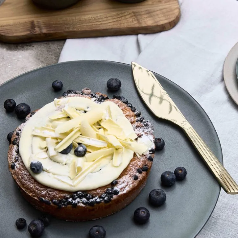 RAW kakekniv 28,7 cm i champagne gold fra Aida er et elegant og funksjonelt kjøkkenredskap som gjør servering av kaker til en sømløs opplevelse. Med sitt rene design og elegant overflate passer den perfekt inn i en nordisk borddekking og kan kombineres med RAW kakespade, kakegafler og annet bestikk i serien.