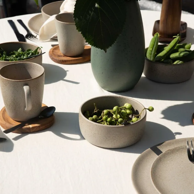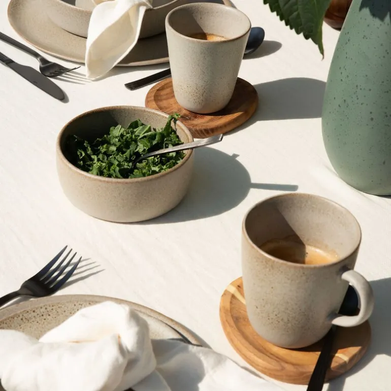 Sandy Beige-fargen har en vakker, jordnær nyanse inspirert av nordiske sanddyner, med små, nesten glitrende prikker som gir liv og dybde til glasuren. Perfekt for et elegant og moderne preg i hjemmet.